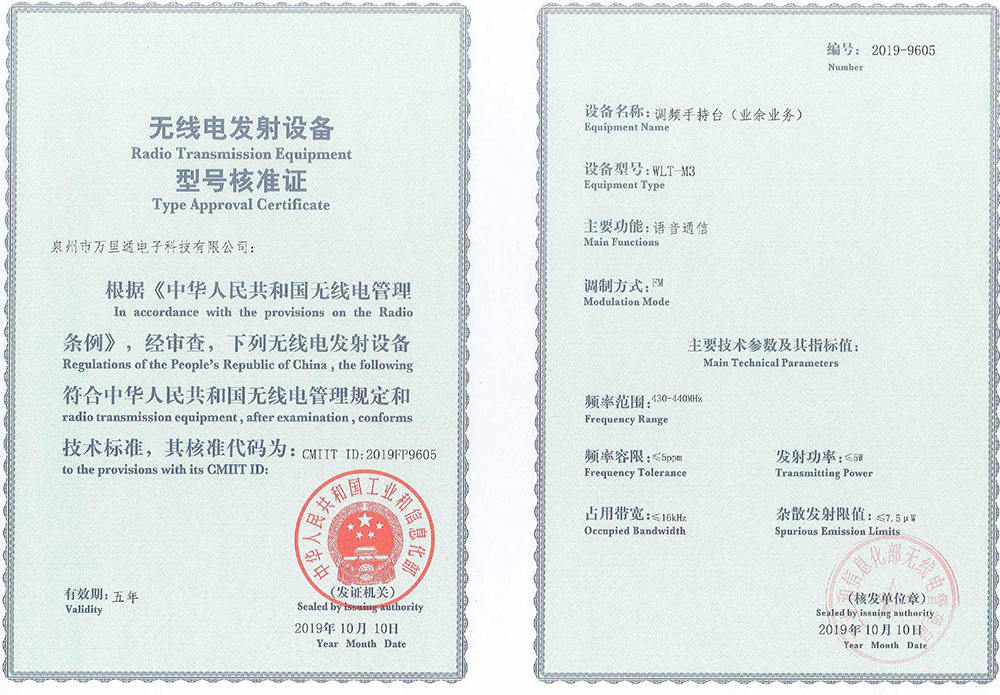 萬里通UV5F plus核準(zhǔn)證
