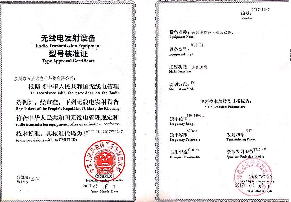 萬里通UV5F plus核準證